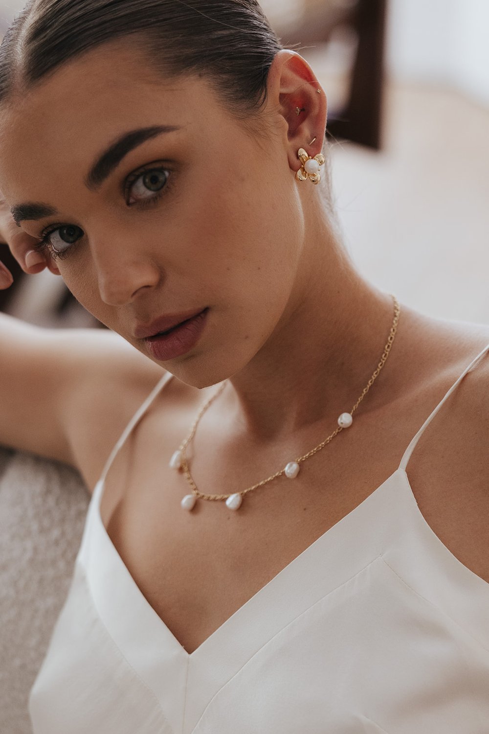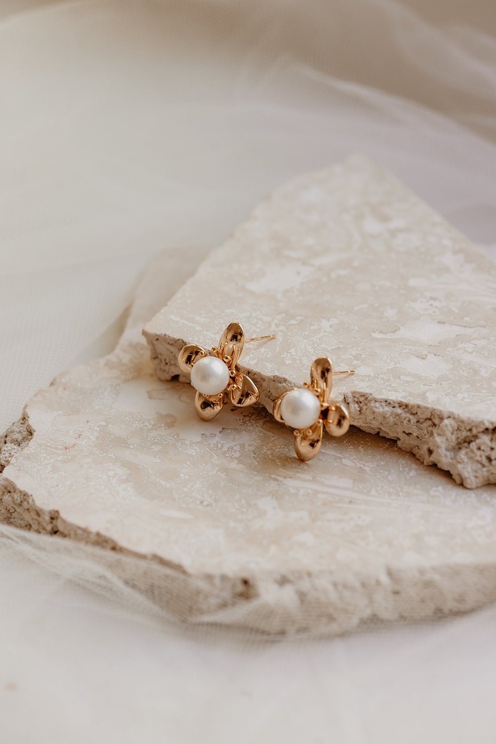 Discover the essence of Faith, Hope, Love, and Luck embodied in our Clover studs—a contemporary expression of femininity. These earrings exude modern charm with their gold-filled floral petal accents, striking a perfect balance with the timeless elegance of a central pearl. Clover is the embodiment of playfulness, carefree spirit, and innocence—living for the hope of it all. We envision these gold pearl studs as a bearer of promises, enhancing the magic of your special day.