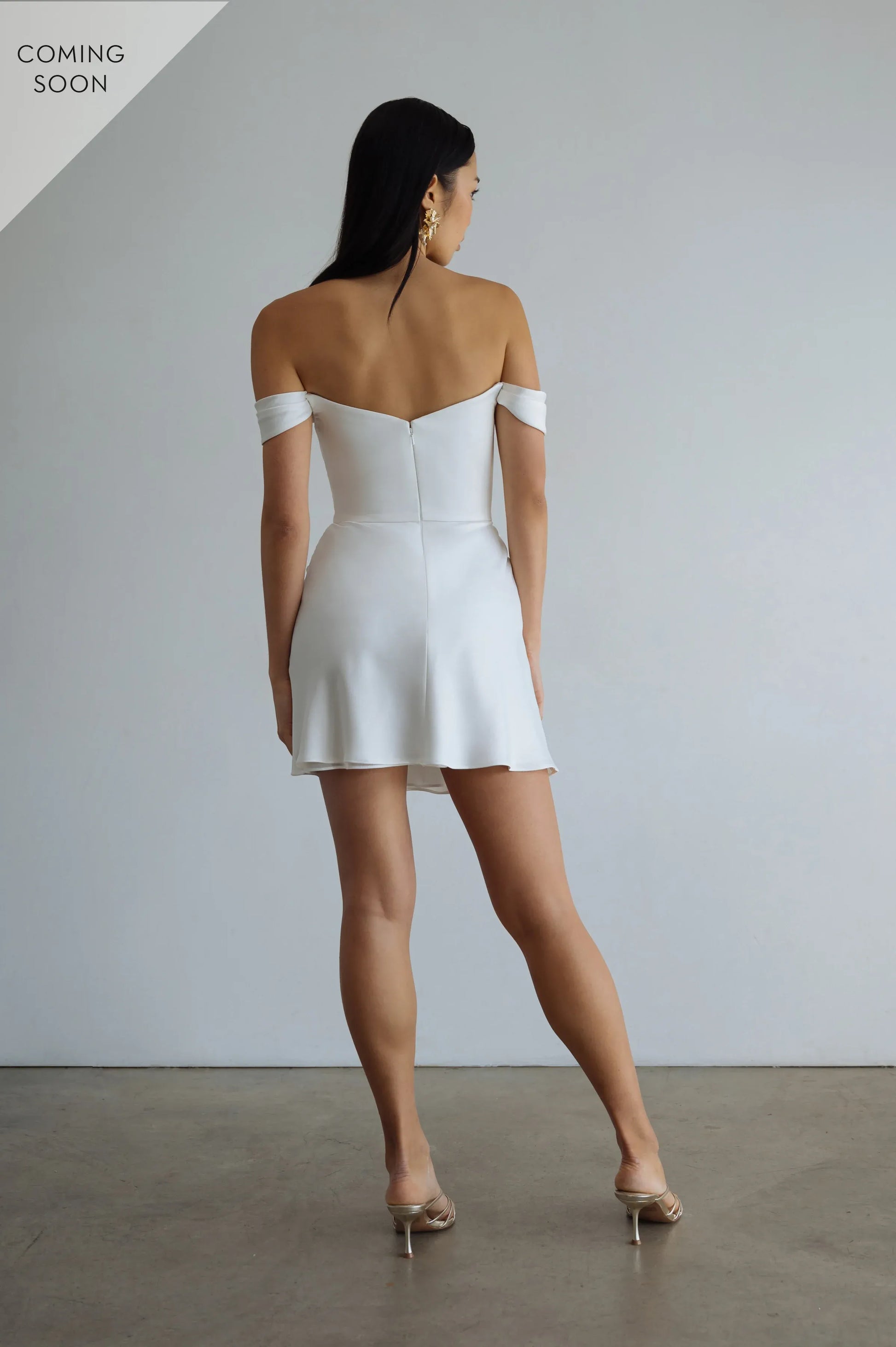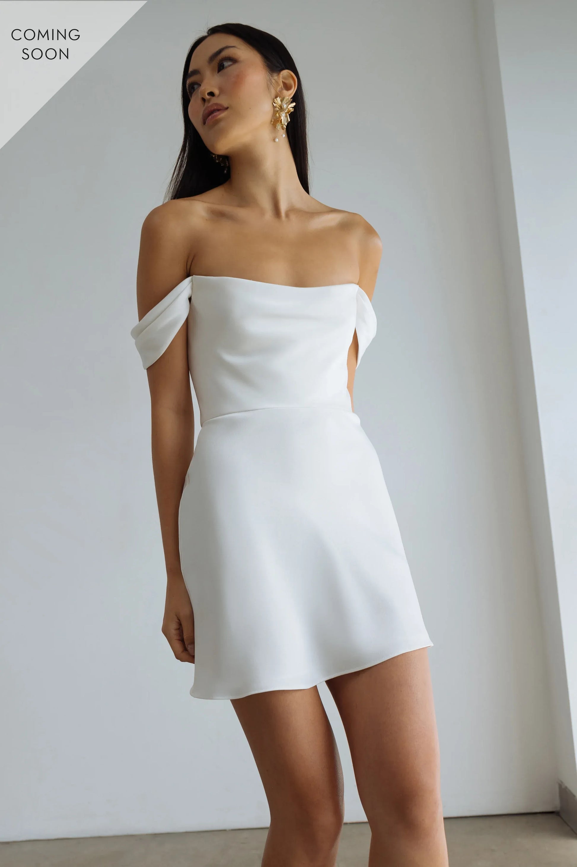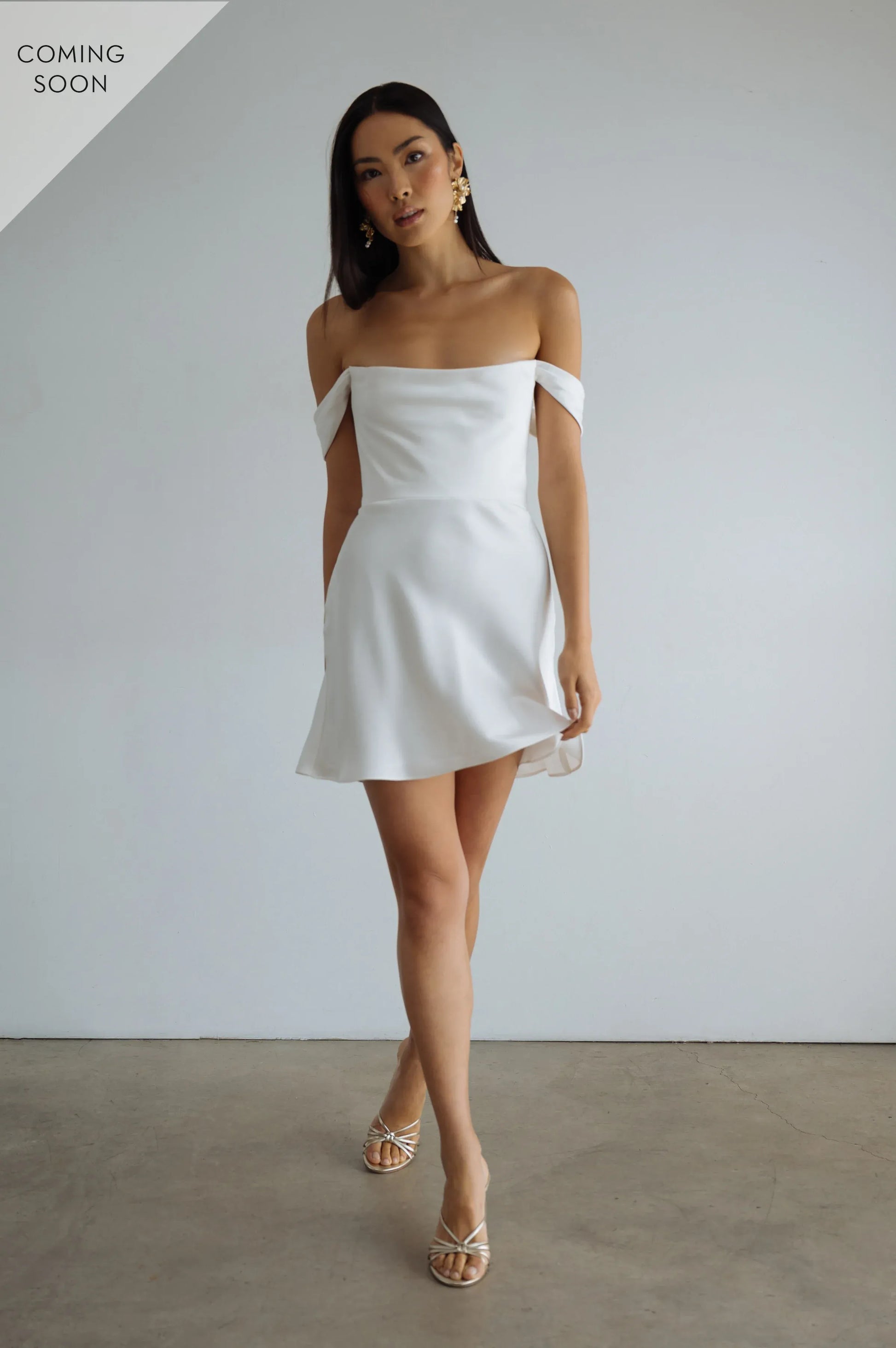 A mini take on a favorite dress, our beloved Evelyn. This satin dress was made to dance the night away.
