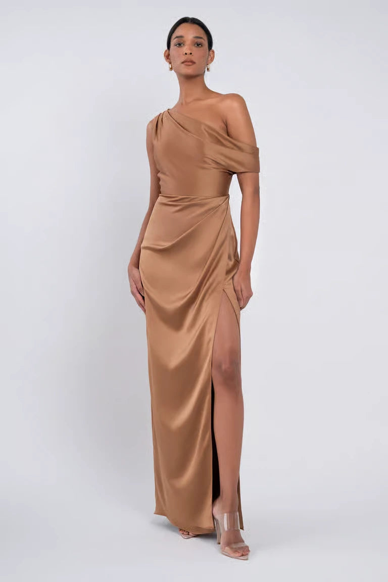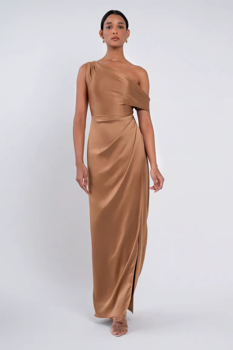 The Erin Dress is the essence of effortless elegance. Designed to drape off the shoulders with a hint of allure, it features soft pleating across the skirt for a flattering, waist-enhancing finish.