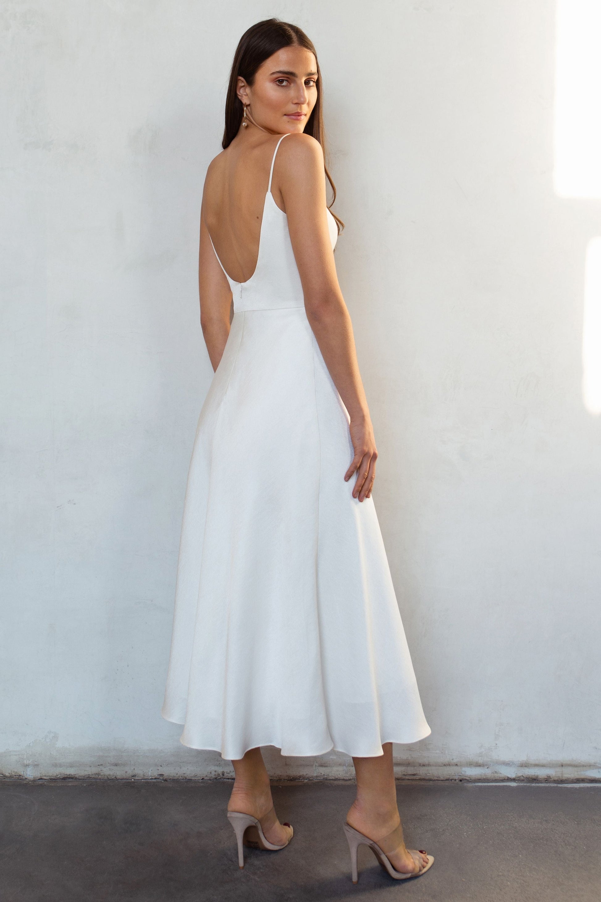 The Callista dress offers a classic elegance. Made from our soft, high-quality Mikado fabric, it has a simple scoop neck and thin spaghetti straps. The well-crafted top part of the dress gives it a polished look. Its length is perfect for a touch of sophistication, while the skirt is designed to flow and spin with every movement.