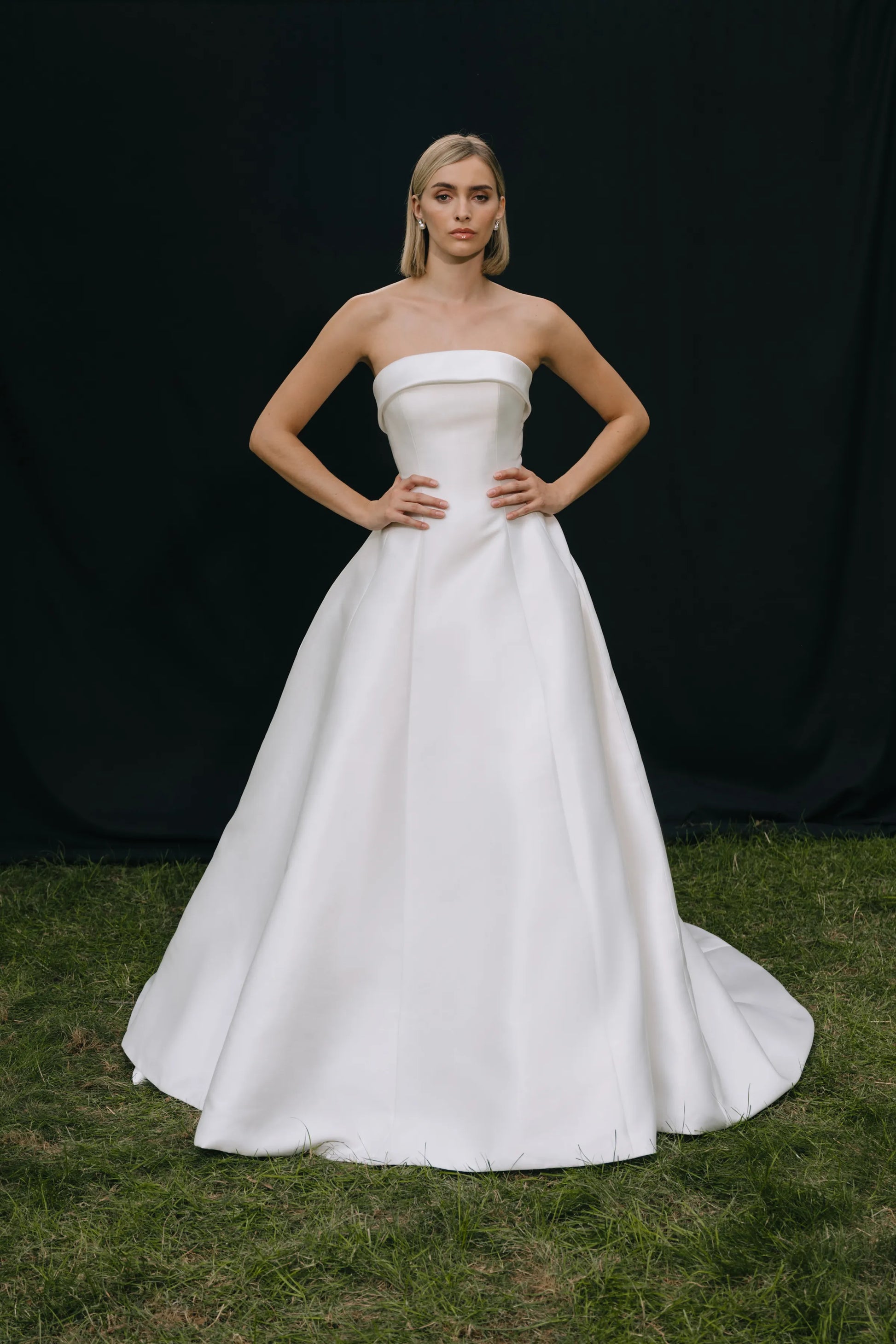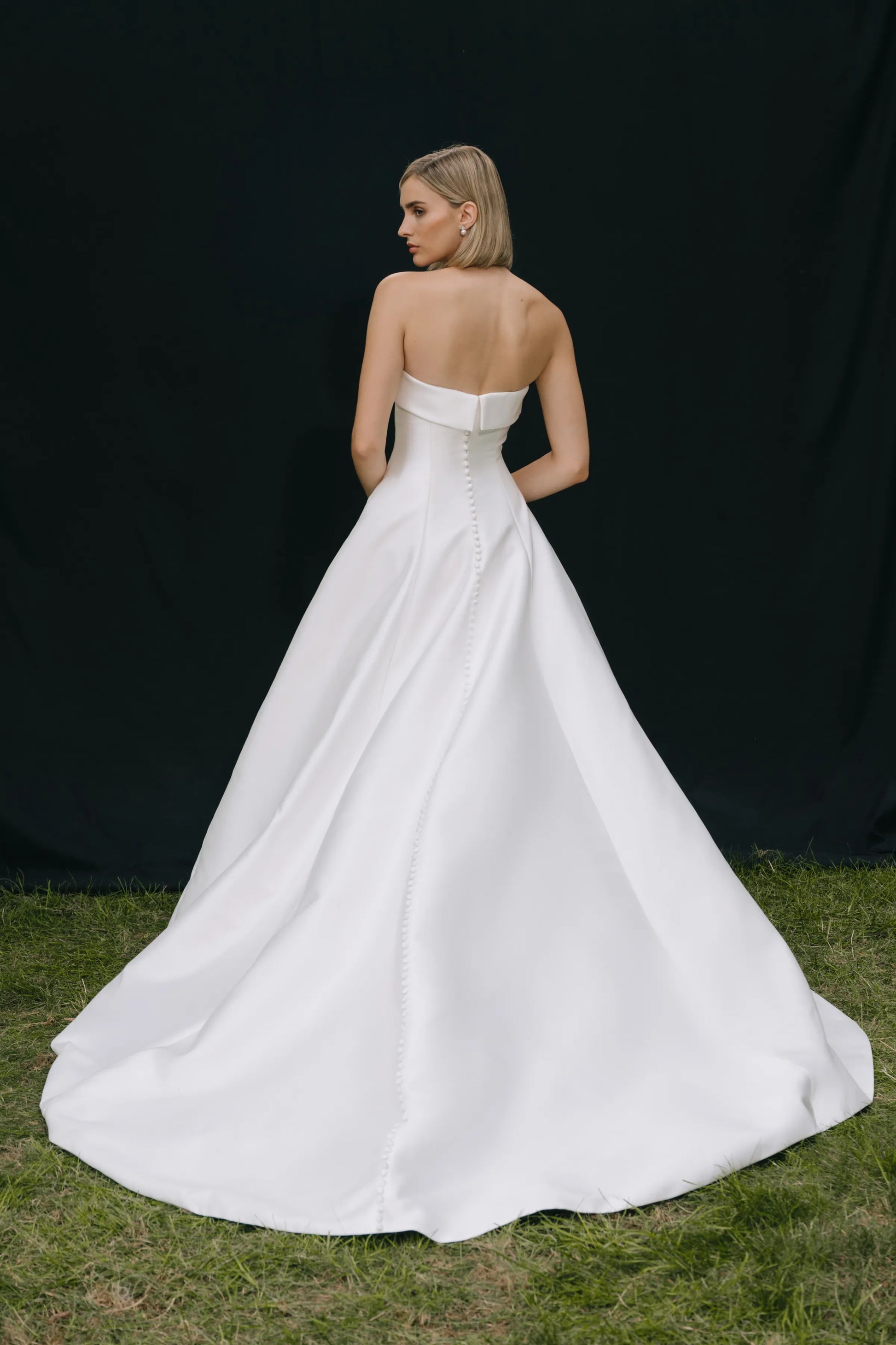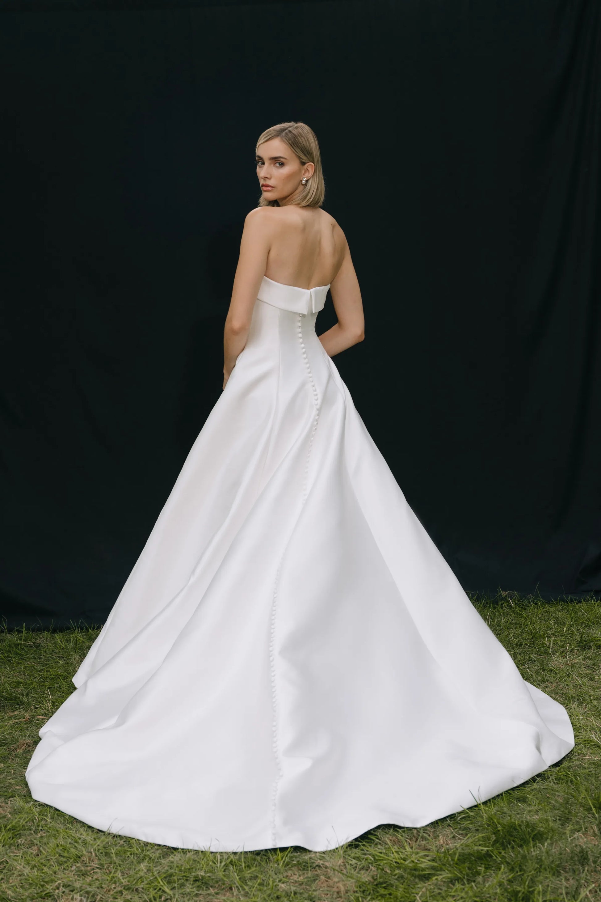 Effortlessly chic and timeless, the Leah gown embodies the elegance of 'less is more.'
