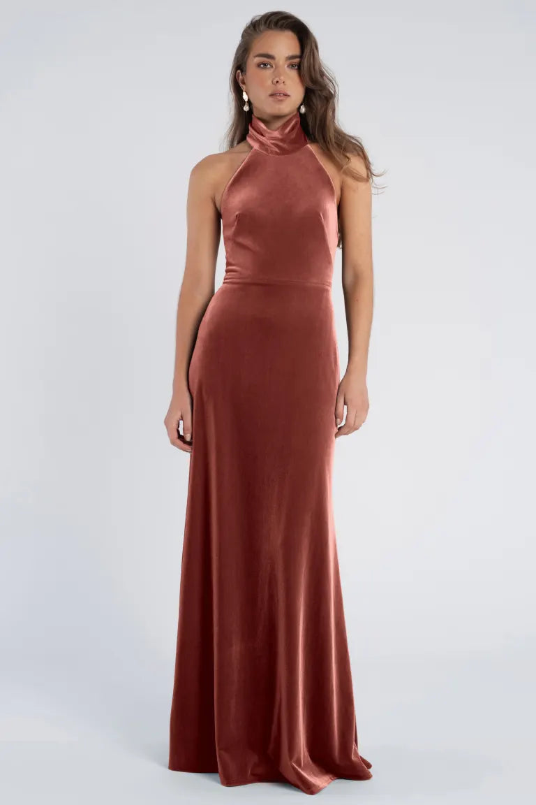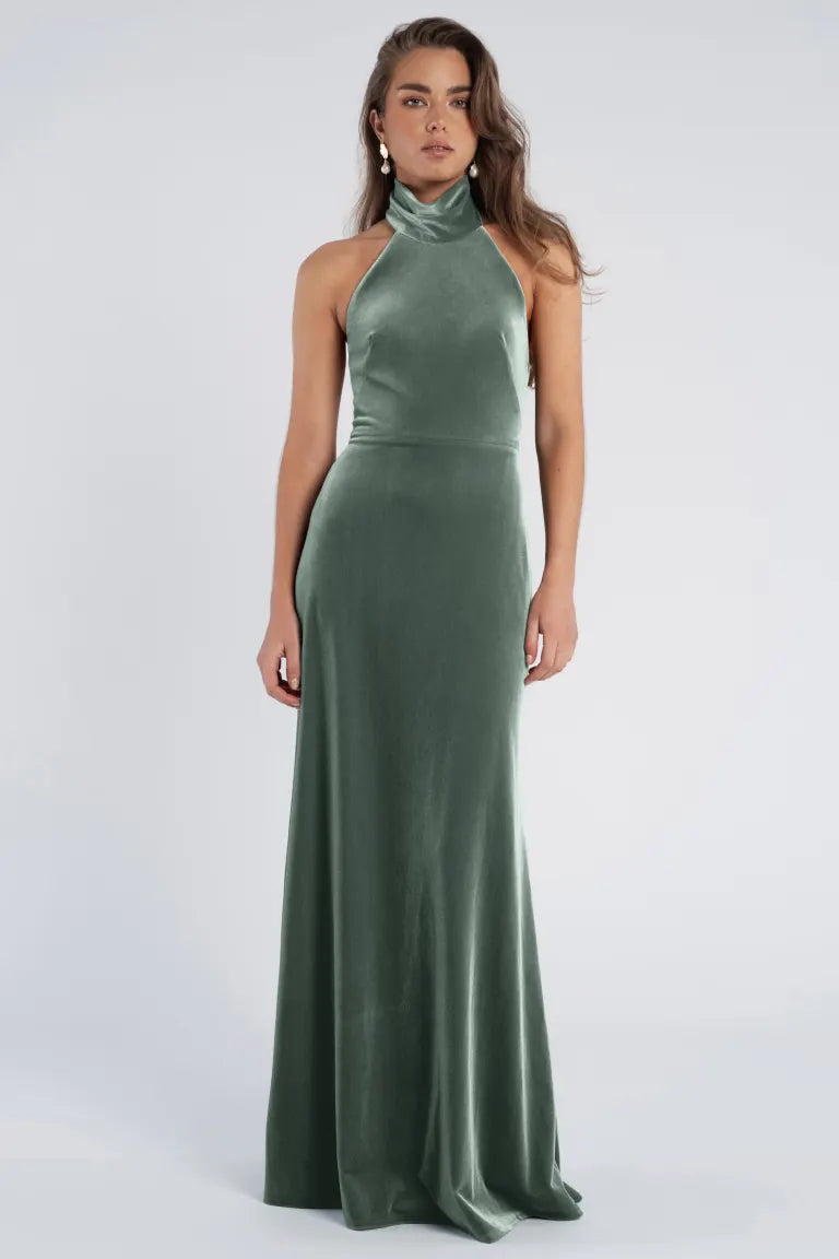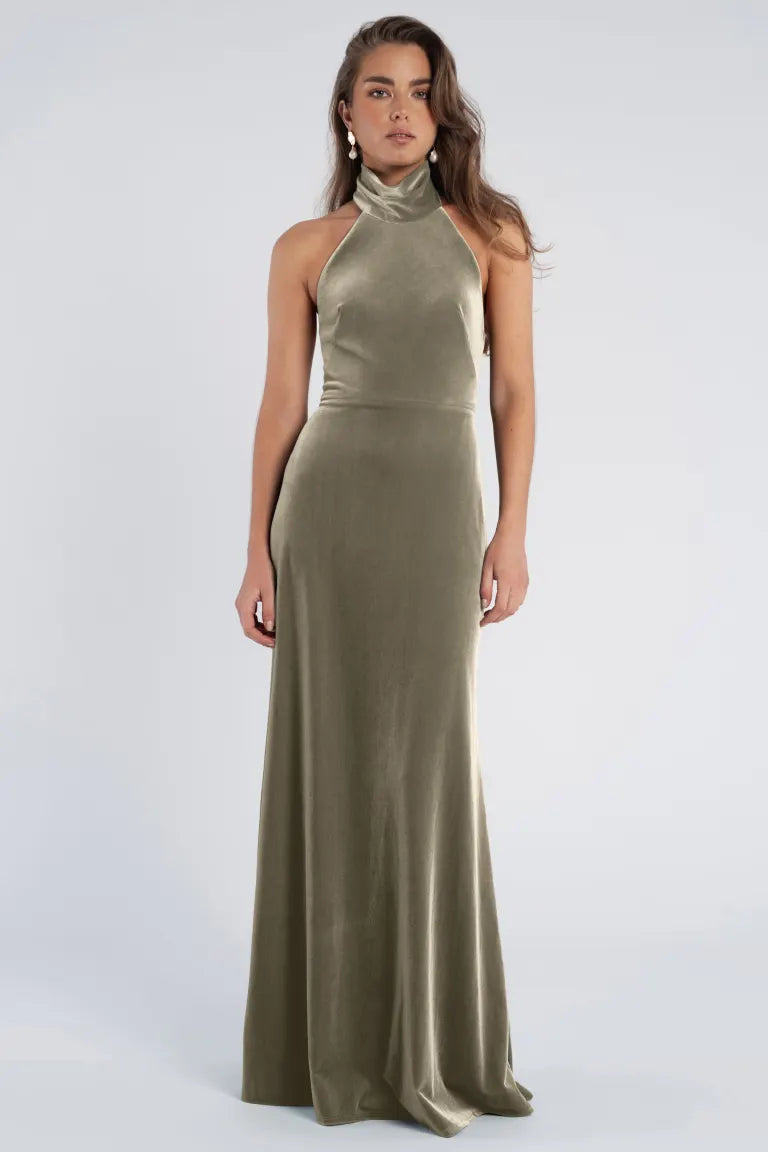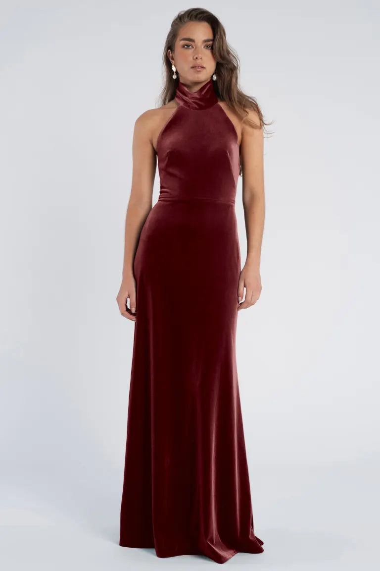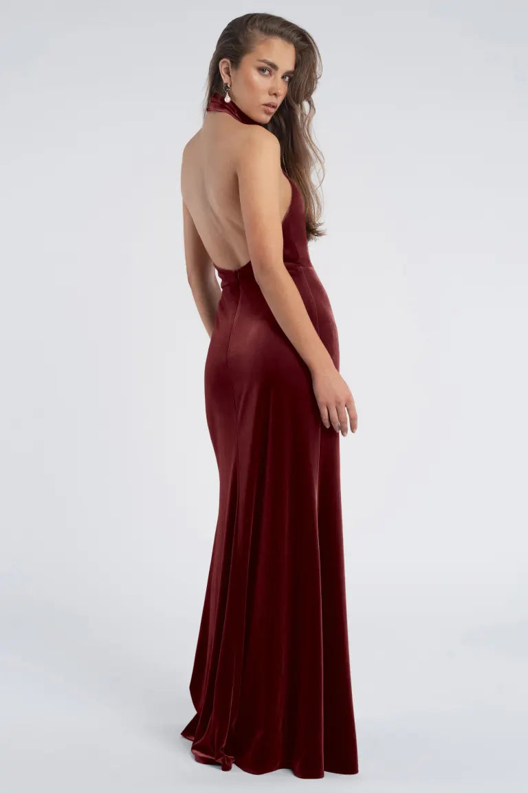 The Lennox velvet halter dress is a stunning choice for any event. Featuring a beautifully draped mock neckline and a slinky bias cut skirt, she is as timeless as she is modern.