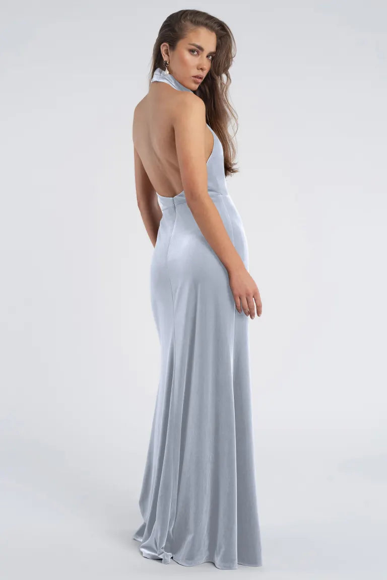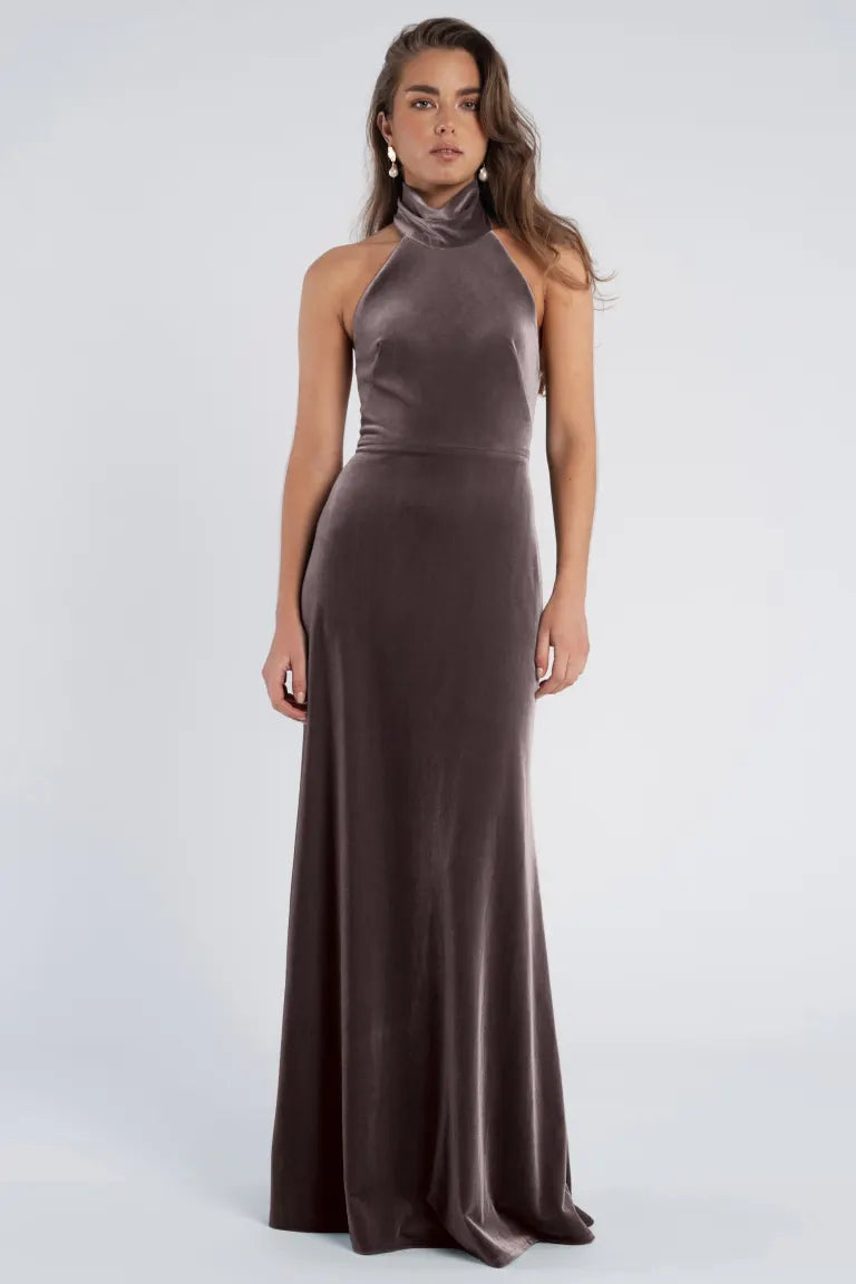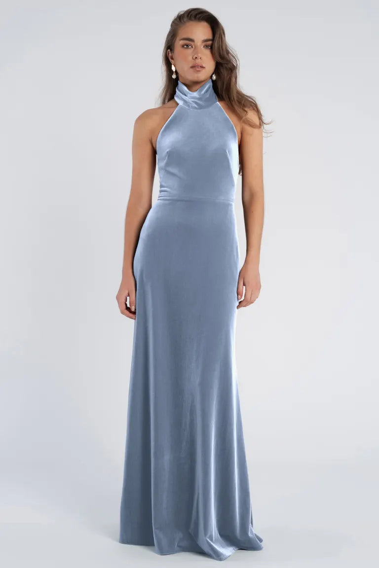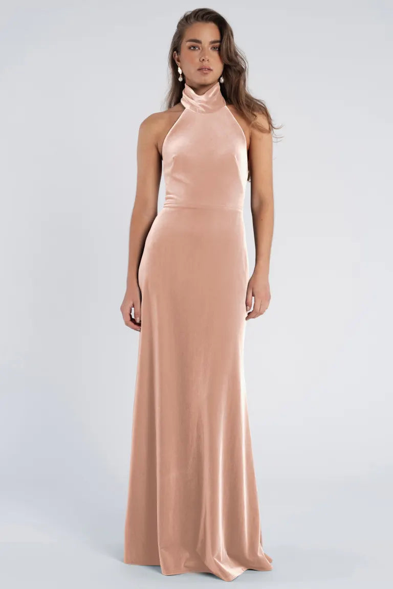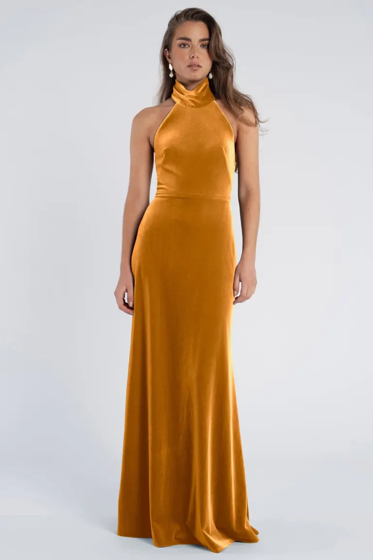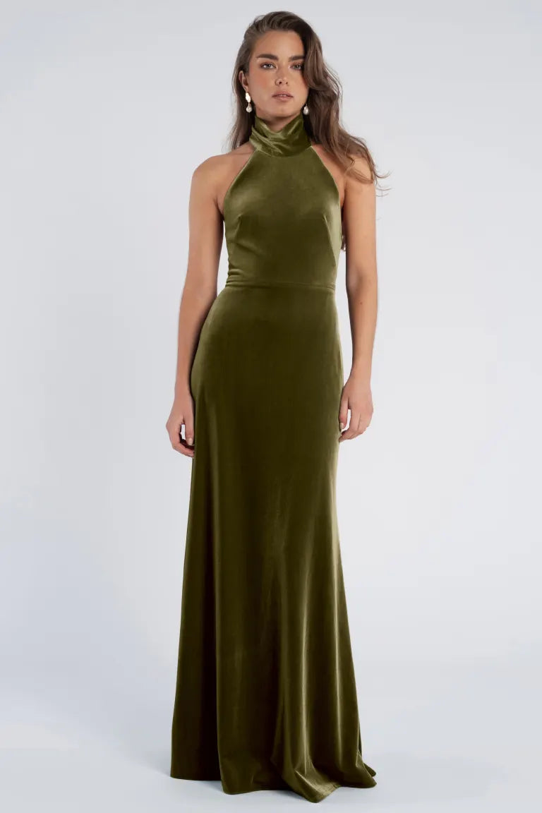 The Lennox velvet halter dress is a stunning choice for any event. Featuring a beautifully draped mock neckline and a slinky bias cut skirt, she is as timeless as she is modern.