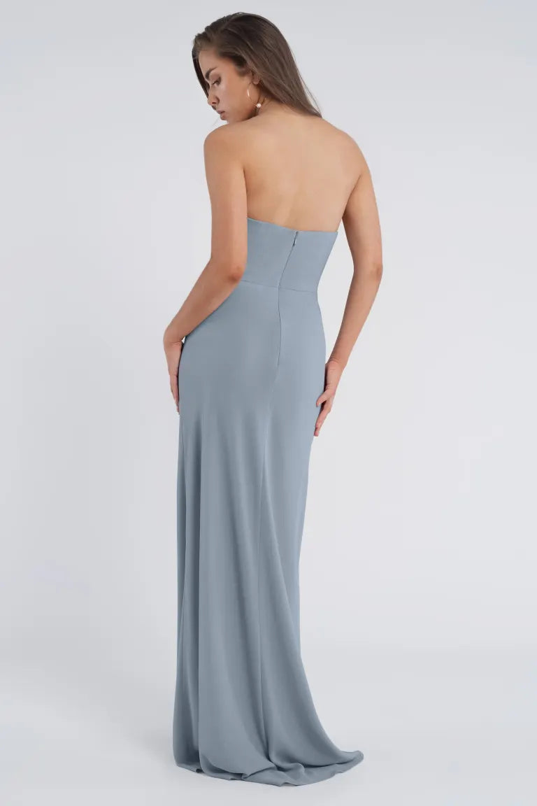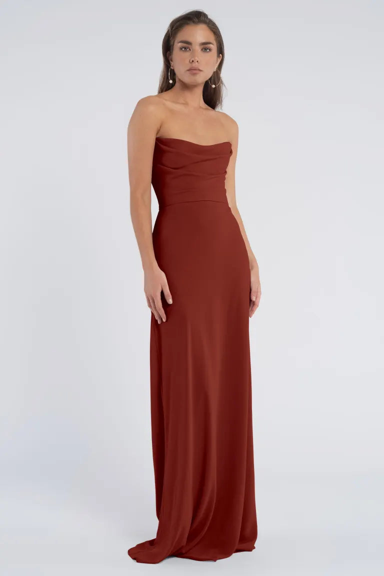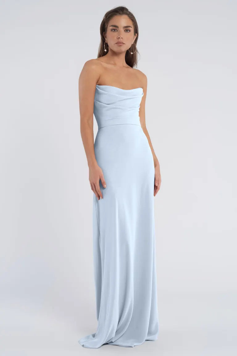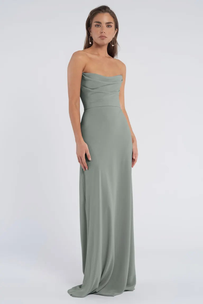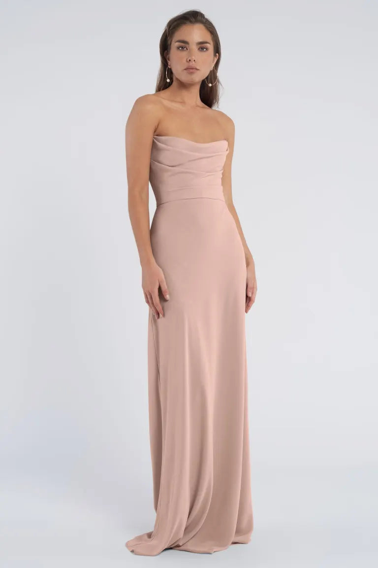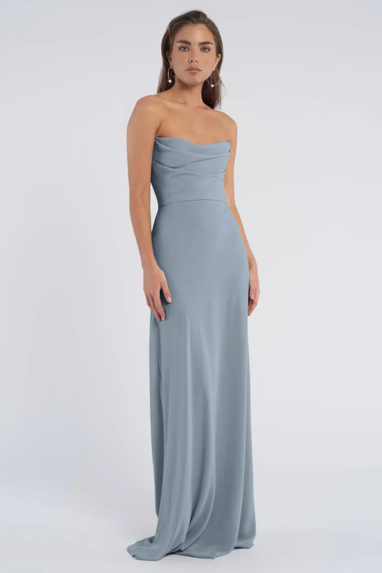 The Liv dress, cut in our beautifully fluid pebbled crepe fabric is an elegant choice for every occasion. Dramatic peaks and a softly draped cowl effortlessly flatters the décolletage, and the carefully draped bodice features boning and bust cups for comfortable structure. The slinky bias cut skirt flatters every curve.