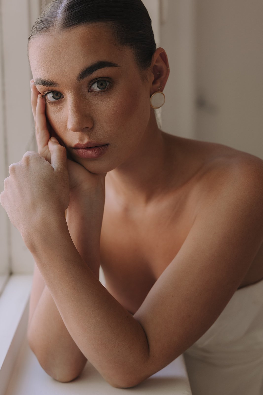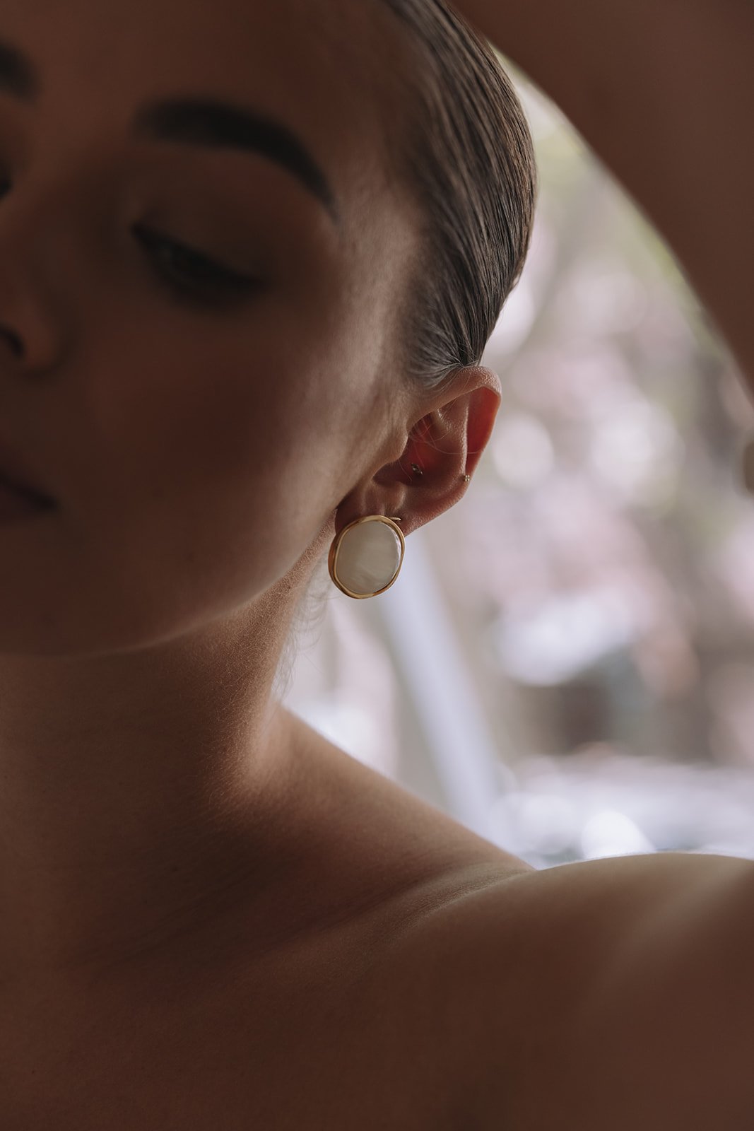 Maeve is elegance redefined. Featuring quartz in place of traditional pearl, she brings a fresh, modern charm to bridal earrings, an ingénue in her own right. She leaves a lasting impression without demanding the spotlight. Designed to elevate rather than overshadow, this pair balances luxury and simplicity with its graceful circular silhouette and radiant quartz center.