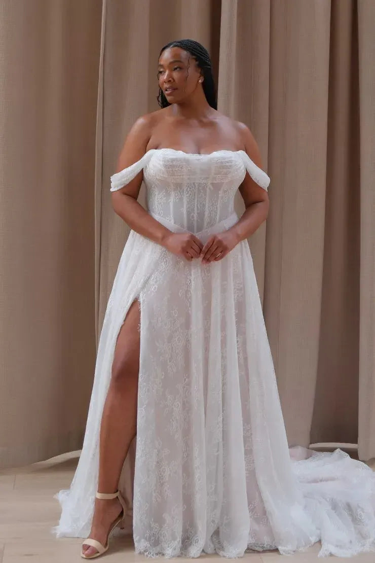 Romantic A-Line Chantilly Lace Wedding Dress with Thigh Slit