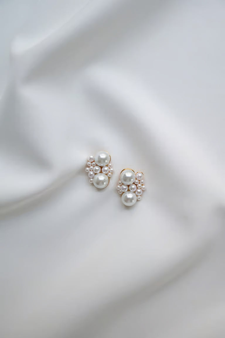 Elevate your bridal look with the timeless elegance of the Natalya earrings. Featuring a radiant cluster of pearls, this design adds the perfect touch of shimmer to any wedding gown or little white dress. Loved for their classic beauty and versatility, the Natalya earrings are now available in both silver and gold to suit your unique style.