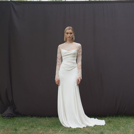 With its delicate charm and feminine flair, the Renata topper completes any bridal ensemble beautifully.