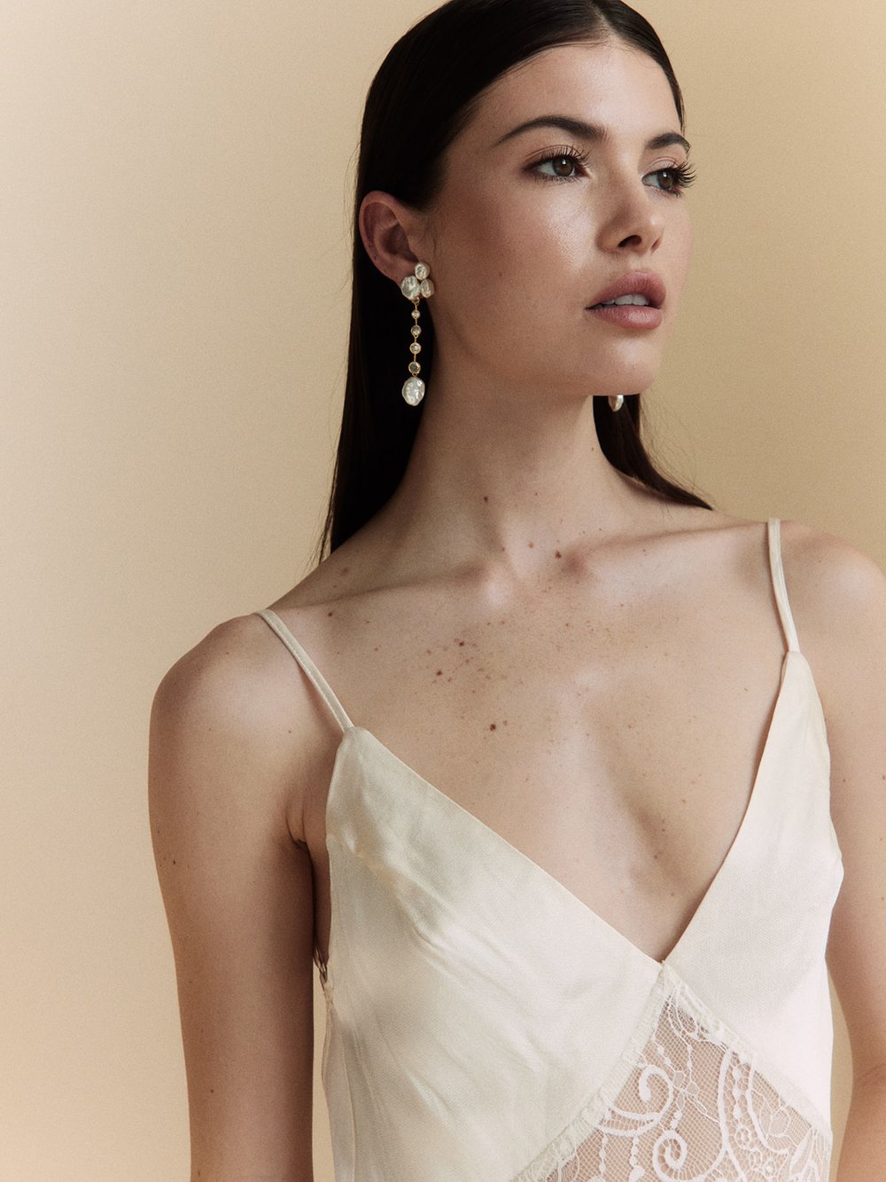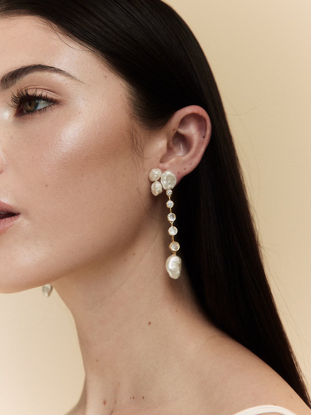 Sabine embodies untamed elegance, effortlessly blending the sparkle of rhinestone accents with the timeless beauty of natural baroque pearls. This pair showcases exquisite craftsmanship and meticulous detail, making the Sabine earrings a sought-after choice for lovers of understated luxury.