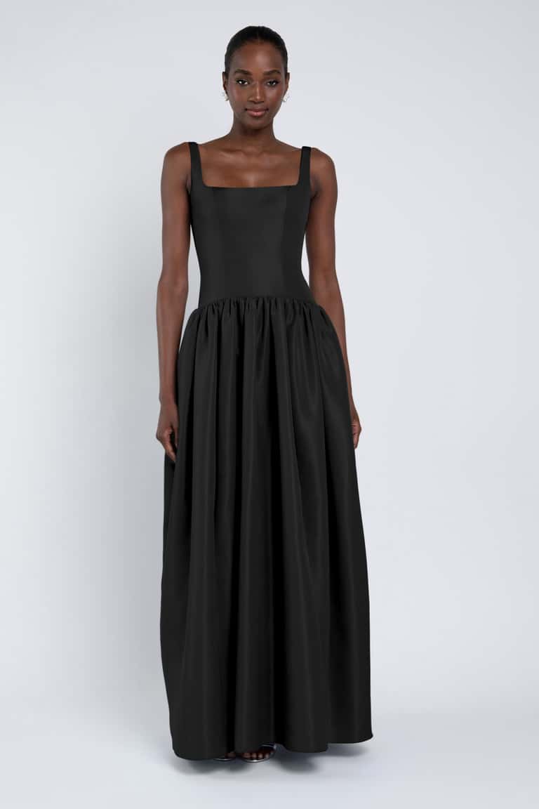 The Shelby dress, crafted from our new lightweight taffeta, features a classic square neckline, an arched drop waist, and a gathered full skirt.