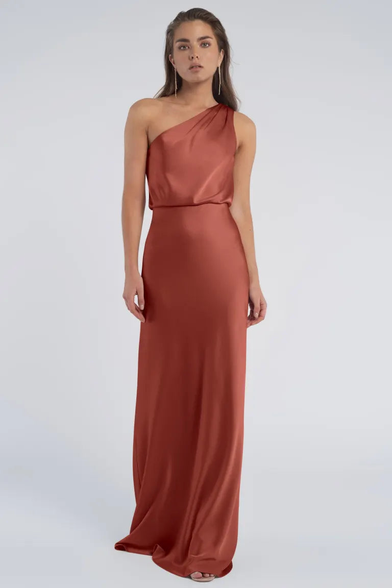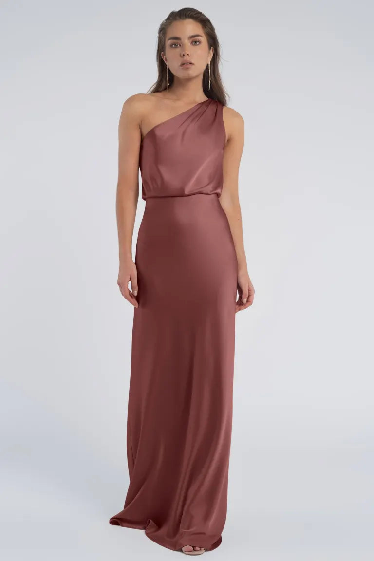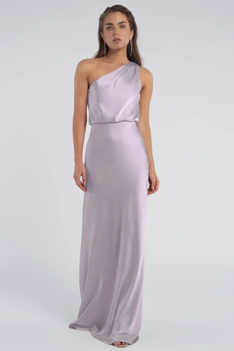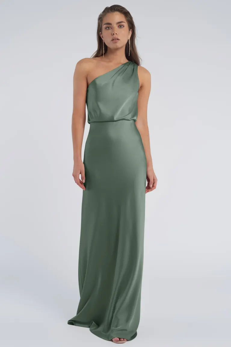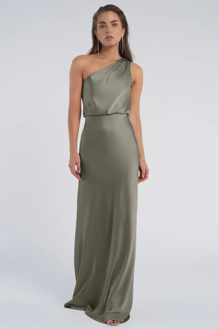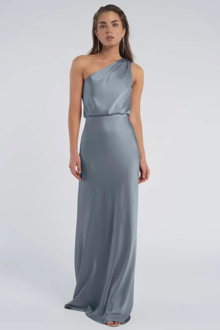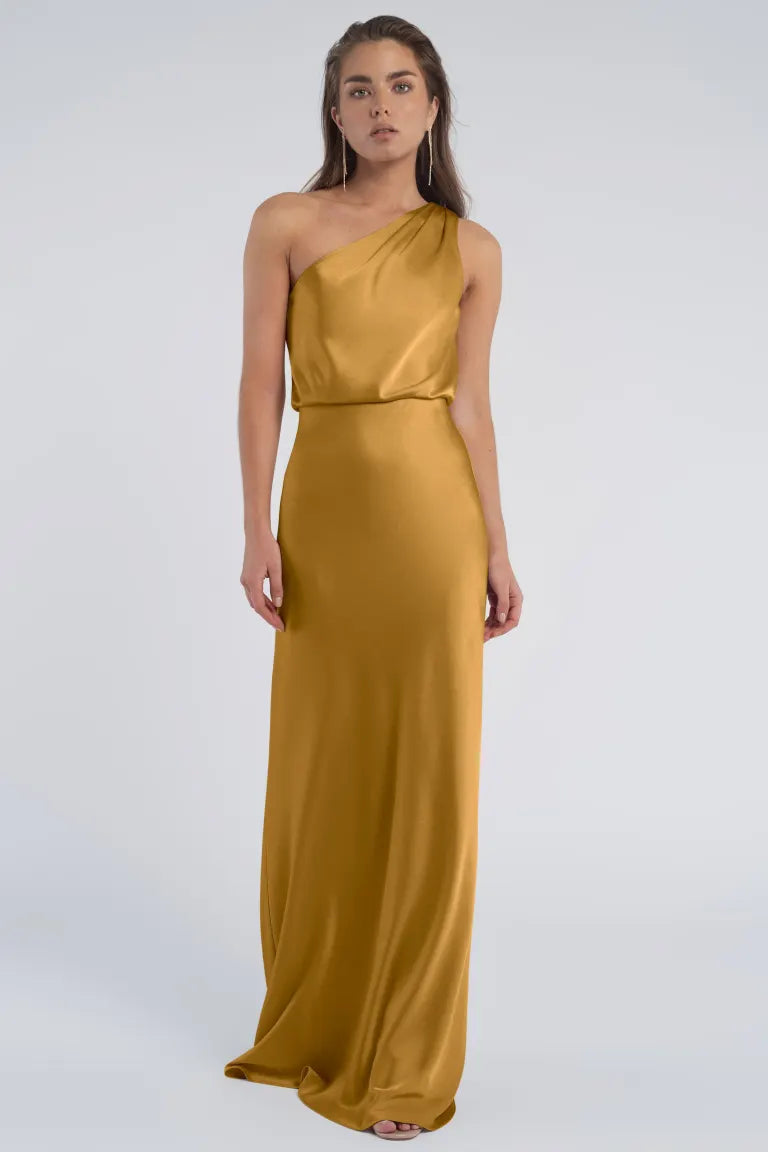The Sterling dress, cut in our lustrous luxe satin fabric, takes inspiration from old Hollywood. Featuring an elegant one shoulder neckline with a pleated detail and a flattering blouson waist, her slinky bias cut skirt flatters your every curve.