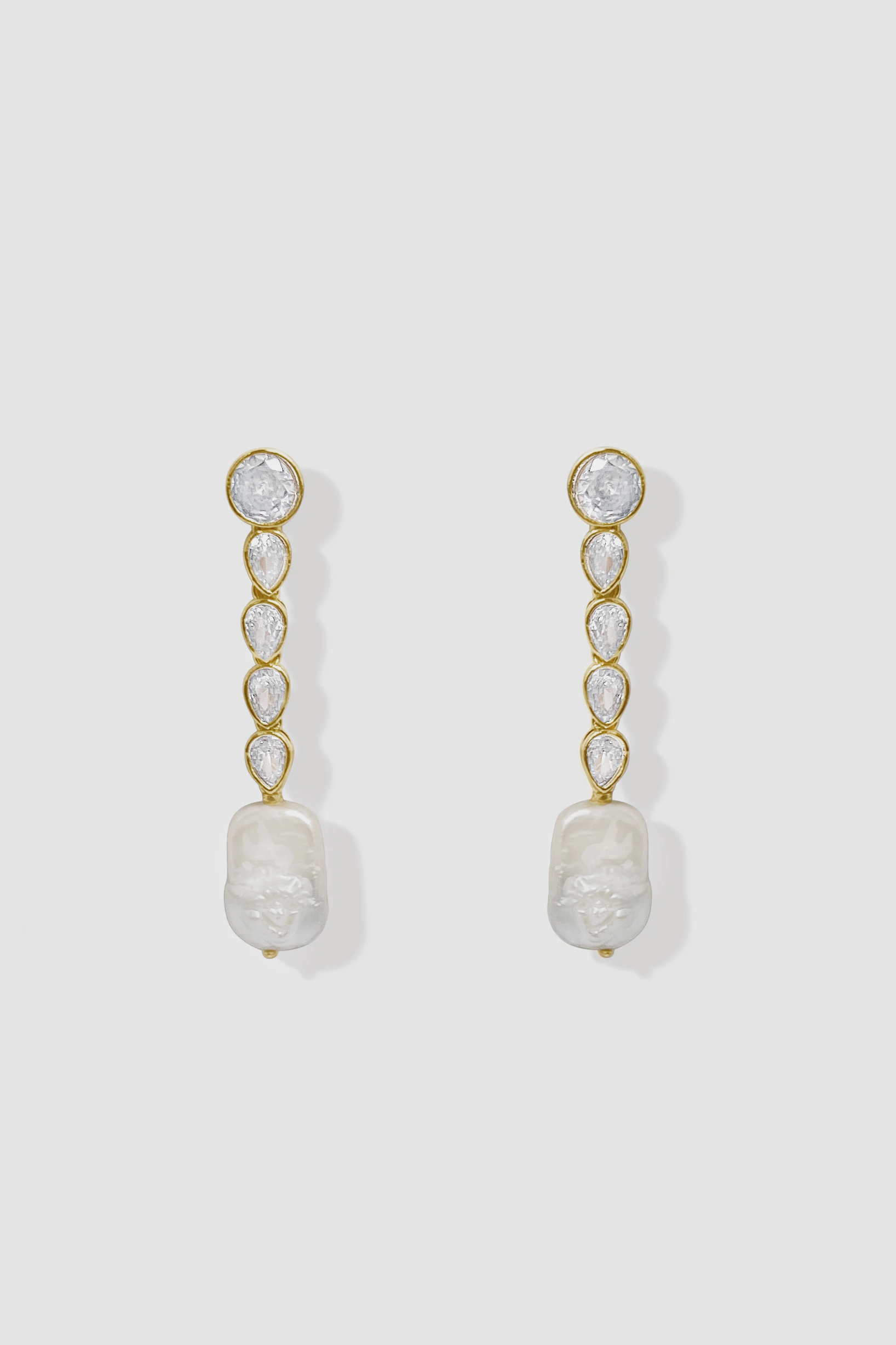 Gold Rhinestone Drop Bridal Earrings With Pearl