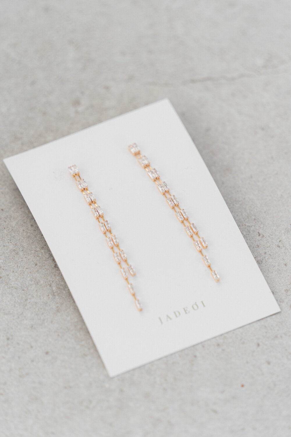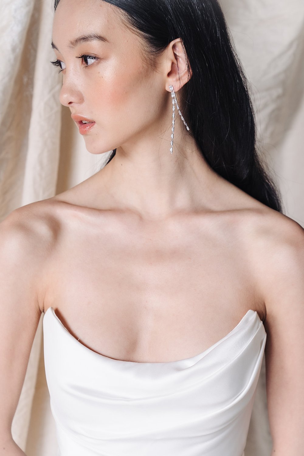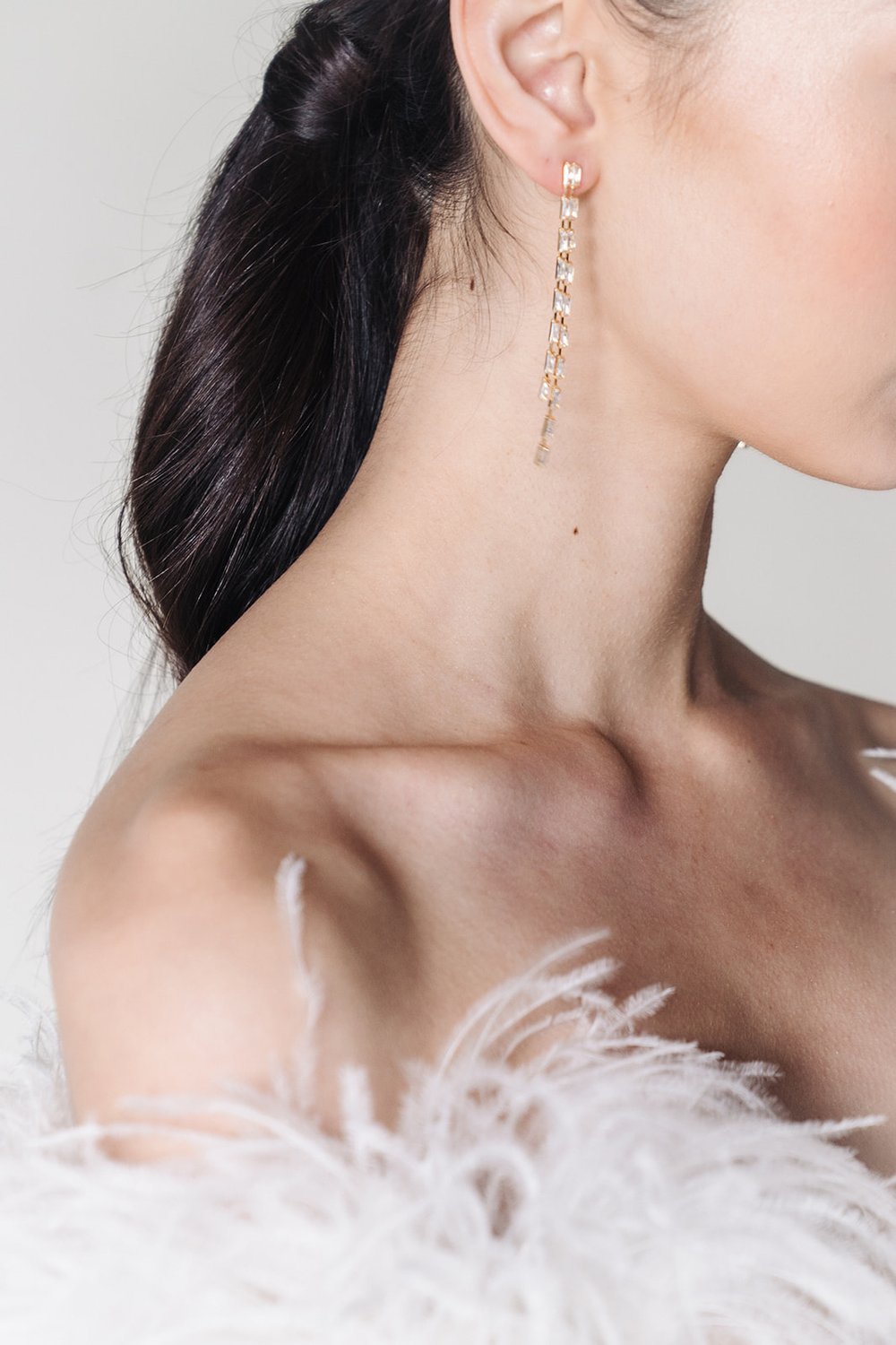 Dangling minimal statement piece, Willow is a refined choice for modern brides. Made up of double strands of shimmering crystals, the piece enhances every look, accompanying with hints of lux and contemporary.